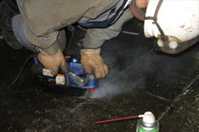 降雪予報があったり、気温の低下による路面の凍結が予想される場合は、パトロール班・凍結防止剤散布班等が待機します。 パトロール班は外気温を測定し、気象状況・路面状況を無線で報告します。 -
